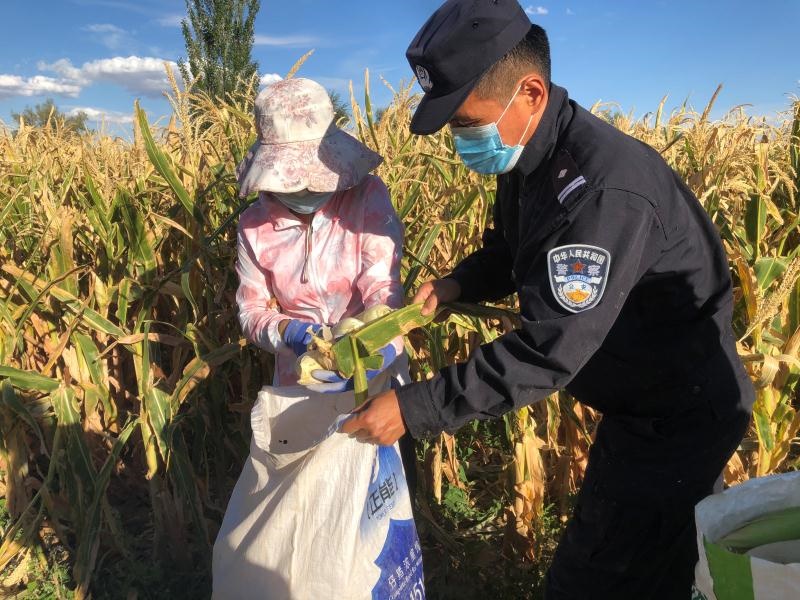 金秋時節(jié),大地金黃,碩果飄香,民警們頭頂烈日,揮舞鐮刀,有條不紊地收割著玉米,田間地頭中到處洋溢著爽朗的笑聲、彌漫著豐收的喜悅。這是在內蒙古阿拉善右旗巴丹吉林鎮(zhèn)阿日毛道嘎查的莊稼地里,阿拉善邊境管理支隊的民警幫助群眾秋收的景象。
