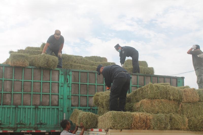 今年以來,內(nèi)蒙古自治區(qū)西部的阿拉善盟持續(xù)高溫少雨,阿拉善左旗蘇宏圖地區(qū)草場退化嚴重,駝、羊等牲畜草料嚴重匱乏,影響了牧民正常生產(chǎn)生活。8月9日,從甘肅省購置的草料順利抵達蘇宏圖,但是由于缺少精壯勞動力,牧民們望著一車車救命的草料卻犯起了難。正當大家一籌莫展之際,派出所聞訊組織6名民警組成黨員先鋒隊投入勞動,經(jīng)過3天的努力,成功將70噸1200捆草料分裝到牧民車上,受到群眾的一致好評。(牛鑫 肖鵬 梁鎮(zhèn))