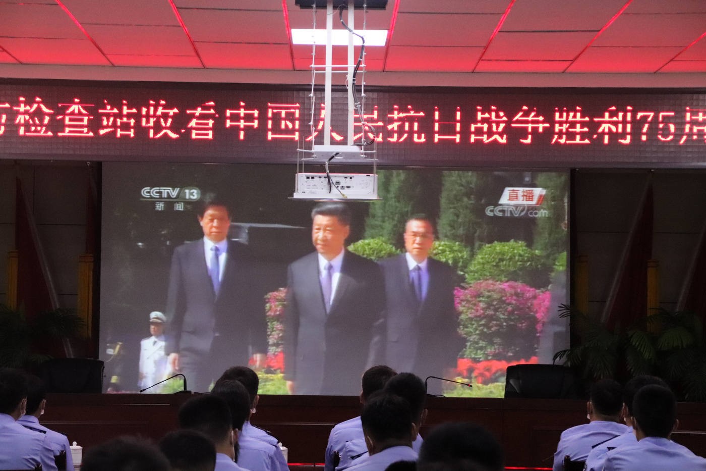9月3日,策克出入境邊防檢查站組織全站民警收看中國人民抗日戰(zhàn)爭勝利75周年紀(jì)念日直播。
