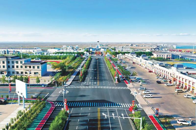 策克口岸國(guó)門區(qū)域鳥(niǎo)瞰圖。薩仁格日勒攝
