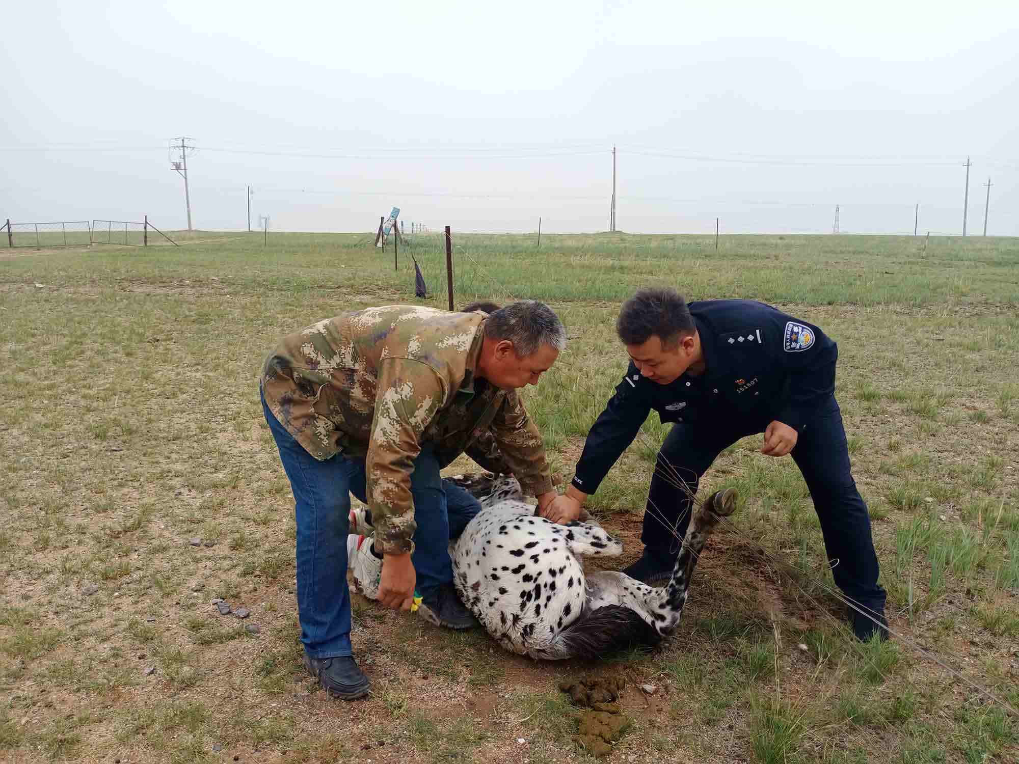 據(jù)了解,23日9時許,該所民警在下鄉(xiāng)走訪途中,遇到牧民群眾的小馬駒被鐵絲網(wǎng)困住無法掙脫,因鐵絲網(wǎng)網(wǎng)眼密集且十分牢固,牧民多次嘗試無果。在了解詳細(xì)情況后,為了防止小馬駒受傷并保證鐵絲網(wǎng)不受損害,民警和牧民利用鉗子將纏繞在馬蹄上的鐵絲小心解開,20分鐘后小馬駒“重獲自由”。