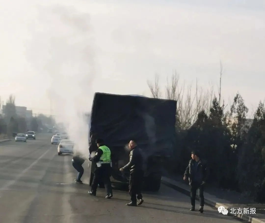當日,包頭市公安局交管支隊東興大隊第三警務區(qū)民警裴少華、孫建波、趙永來三人巡控至包白公路黃草洼村口北200米處時,發(fā)現(xiàn)迎面駛來的重型半掛牽引車左后側(cè)有濃煙飄出,隨即將其攔停,此時車底已岀現(xiàn)明火,三人迅速拿起滅火器,并前往附近商戶打水全力滅火,20分鐘后火被撲滅。經(jīng)過初步了解,火源為剎車抱死導致。