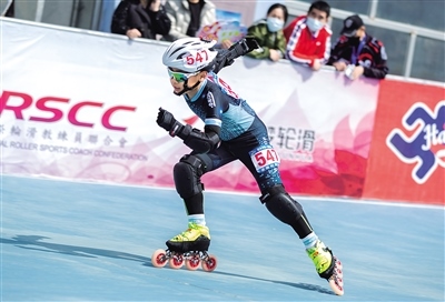 運(yùn)動(dòng)員在速度輪滑比賽中。(包頭市體育局提供)