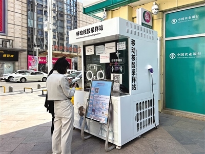 位于青山區(qū)萬(wàn)達(dá)廣場(chǎng)北門(mén)的便民核酸采樣點(diǎn)