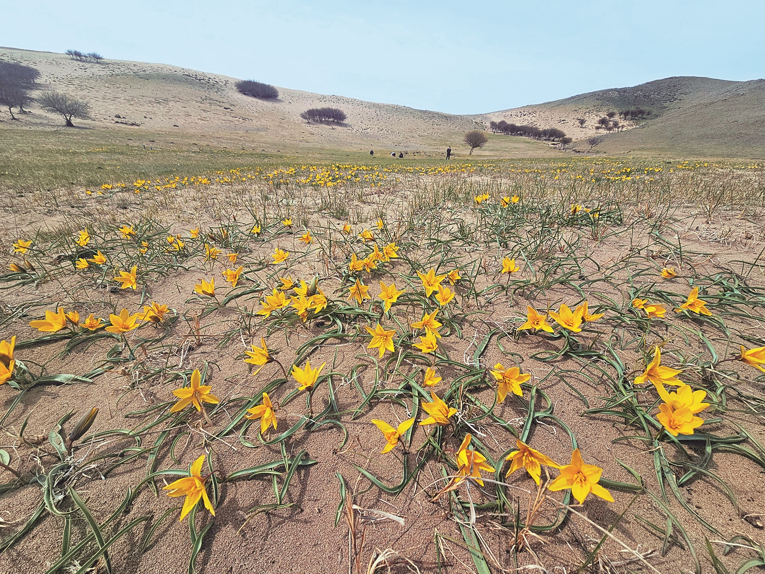 蒙古郁金香是多年生草本植物,僅分布于我國(guó)內(nèi)蒙古,由于數(shù)量稀少,被列為國(guó)家二級(jí)保護(hù)植物。自2023年5月重新發(fā)現(xiàn)郁金香后,保護(hù)區(qū)采取了嚴(yán)格的保護(hù)措施,今年蒙古郁金香分布面積已從最初50畝擴(kuò)展到約100畝,呈現(xiàn)出良好的恢復(fù)態(tài)勢(shì)。 (史子龍)