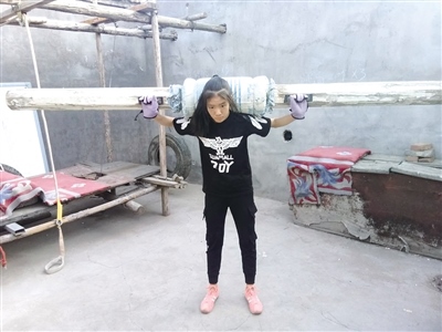 用工地上撿來的木頭樁和繩子制作的簡易牽引機(jī),加了墊子的木凳做跳躍訓(xùn)練,用木頭和海綿做的啞鈴……走進(jìn)呼和浩特市土默特左旗察素齊鎮(zhèn)鄭國花的家里,由父親耗時半個月打造的簡易健身房就是鄭國花每天訓(xùn)練體能的地方。鄭國花在土默特左旗第一中學(xué)高一就讀,每天凌晨4點(diǎn)多,父女二人就準(zhǔn)時出現(xiàn)在察素齊鎮(zhèn)街頭的柏油路和體育場里。從小學(xué)六年級到高一,訓(xùn)練從不懈怠,一堅持就是5年?!捌鋵?shí)最初讓孩子練習(xí)中長跑,主要是為了鍛煉孩子的身體。女兒4個月大的時候,她媽媽就離開了,我一直又當(dāng)?shù)之?dāng)媽把她拉扯大,但這娃娃身體一直不好,不怎么吃飯,身體十分瘦弱,直到上小學(xué)六年級的時候,連一碗飯都吃不進(jìn)去。我一看再這么下去身體指定是要垮掉的,就想著讓她練習(xí)跑步,能多吃點(diǎn)飯。因?yàn)槲沂擒娙顺錾?,以前也是運(yùn)動員,和女兒商量后,她也同意了,我們就開始跑步。第一個月,她還追不上我,但飯量確實(shí)見長,到了第二個月,我就追不上她了,我開始騎著自行車陪她跑,再后來自行車追不上了,我就騎了一輛三輪車,三輪車也不行了,干脆買了一輛摩托車,這么多年從沒間斷過?!?月19日,鄭龍在接受記者采訪時表示,對于女兒,她最大的希望是女兒健健康康的,以后能進(jìn)入北京體育大學(xué),將來能進(jìn)入國家隊,為國爭光。