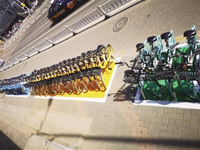 看見共享單車停車區(qū)域是彩色的,很多市民也表示很有新意?!爸巴\噮^(qū)域的劃線已經(jīng)不清楚了,我們在停車時不好找不說,各類單車混放在一起,就算再規(guī)范停車看起來也不如這樣藍(lán)色、綠色、黃色不同顏色,各自劃線看起來清晰。而且這條街在黃、綠、藍(lán)多彩顏色的襯托下顯得也很有活力,炎炎夏日看起來也很清爽。”正好前來停車的市民張女士在將一輛美團(tuán)單車有序停放后開心地說,并且在離開前還拍照留了念。