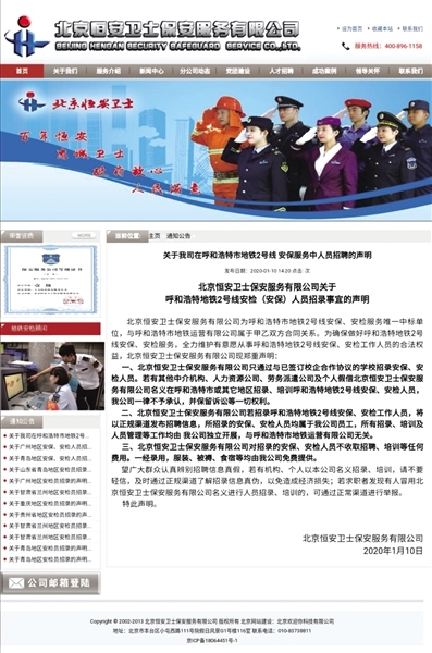 除了1號(hào)線和2號(hào)線安保,恒安衛(wèi)士還將為即將開(kāi)通的地鐵2號(hào)線提供安檢服務(wù)。事實(shí)上,恒安衛(wèi)士近年來(lái)多次在全國(guó)多個(gè)城市引起地鐵安保安檢員高價(jià)招聘亂象。記者從恒安衛(wèi)士官網(wǎng)上看到,2015年9月至2020年1月,恒安衛(wèi)士先后發(fā)布20次聲明,就其公司在廣州、青島、南昌、南寧、蘭州、貴陽(yáng)、重慶等城市引起高價(jià)招聘地鐵安檢、安保人員亂象做出辯解。最近的一次,則是1月20日發(fā)布的《關(guān)于我公司在呼和浩特市地鐵2號(hào)線安保服務(wù)中人員招聘的聲明》。