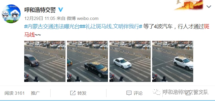 為實(shí)現(xiàn)斑馬線交通安全“三提升一下降”(機(jī)動(dòng)車禮讓斑馬線和行人、非機(jī)動(dòng)車守法意識明顯提升,輿論宣傳倡導(dǎo)“機(jī)動(dòng)車禮讓斑馬線”的深度與廣度不斷提升,群眾對城市交通管理的滿意度顯著提升;因不禮讓斑馬線導(dǎo)致人員傷亡的交通事故發(fā)案率大幅下降)的目標(biāo),按照交管支隊(duì)關(guān)于開展集中整治機(jī)動(dòng)車不禮讓斑馬線行動(dòng)方案的統(tǒng)一部署,支隊(duì)指揮中心運(yùn)用高科技手段,利用高清視頻探頭抓拍機(jī)動(dòng)車不禮讓斑馬線等交通違法行為,并錄入道路交通管理綜合應(yīng)用平臺。自2020年12月12日至12月31日,利用大屏監(jiān)控設(shè)備抓拍260條,錄入系統(tǒng)并予以曝光。