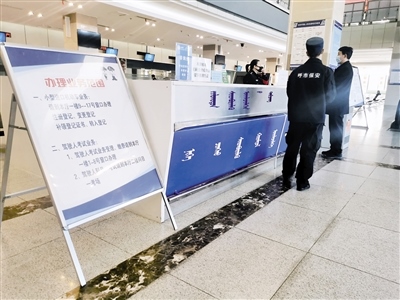 “你好!違章查詢和罰款繳納需要去交管隊(duì),不在這里辦理。如果是本人車輛,也可下載12123 APP進(jìn)行辦理?!?月18日9時(shí)10分,記者走進(jìn)呼和浩特市交警支隊(duì)車輛管理所,在政務(wù)服務(wù)中心東大廳正對著大門的導(dǎo)辦臺,一位民警正在接受市民業(yè)務(wù)咨詢。記者看到,大廳里往日喧囂熱鬧的場景不見了,只有零星幾位市民在辦理業(yè)務(wù)。