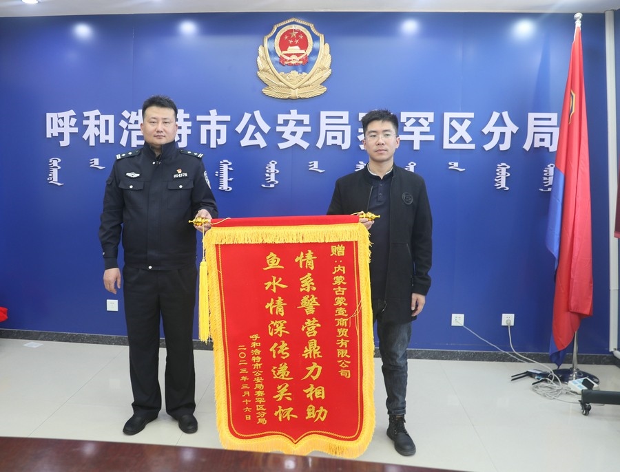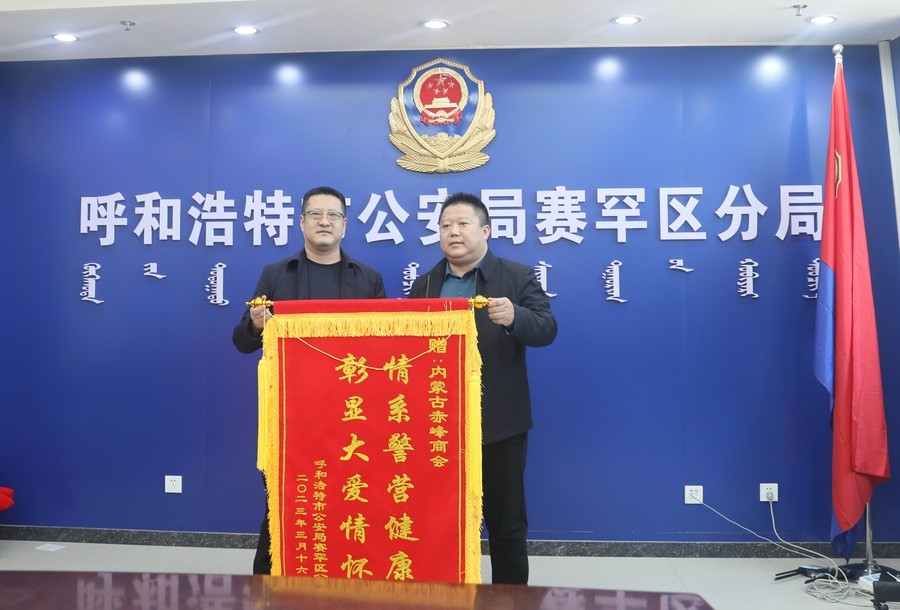 賽罕區(qū)副區(qū)長(zhǎng)、公安分局局長(zhǎng)趙新龍,政委郭震乾等領(lǐng)導(dǎo)熱情接待了商會(huì)和愛心企業(yè)負(fù)責(zé)人,并向商會(huì)及愛心企業(yè)贈(zèng)送錦旗以示感謝。
