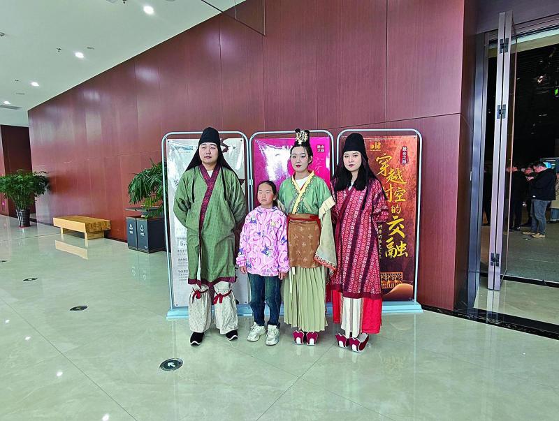 呼倫貝爾歷史博物館工作人員衣著北魏時期服飾與現(xiàn)場市民拍照互動