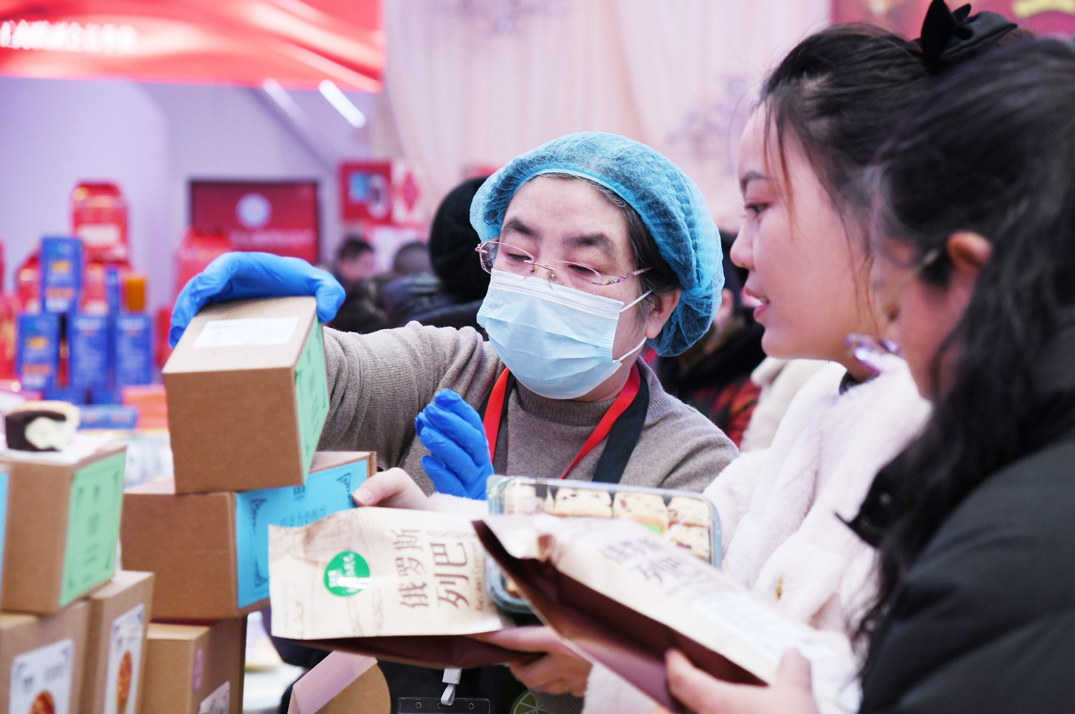 “很開心能參加這次惠民年貨節(jié),我們公司帶來的是自己生產(chǎn)加工的優(yōu)質(zhì)牛羊肉熟食品,還有我們當(dāng)?shù)氐膫鹘y(tǒng)點(diǎn)心,產(chǎn)品均以優(yōu)惠價(jià)出售,質(zhì)美價(jià)廉,歡迎大家前來品嘗選購?!辈旃柌柯浜吞旄蹏H董事長許永珍說道。