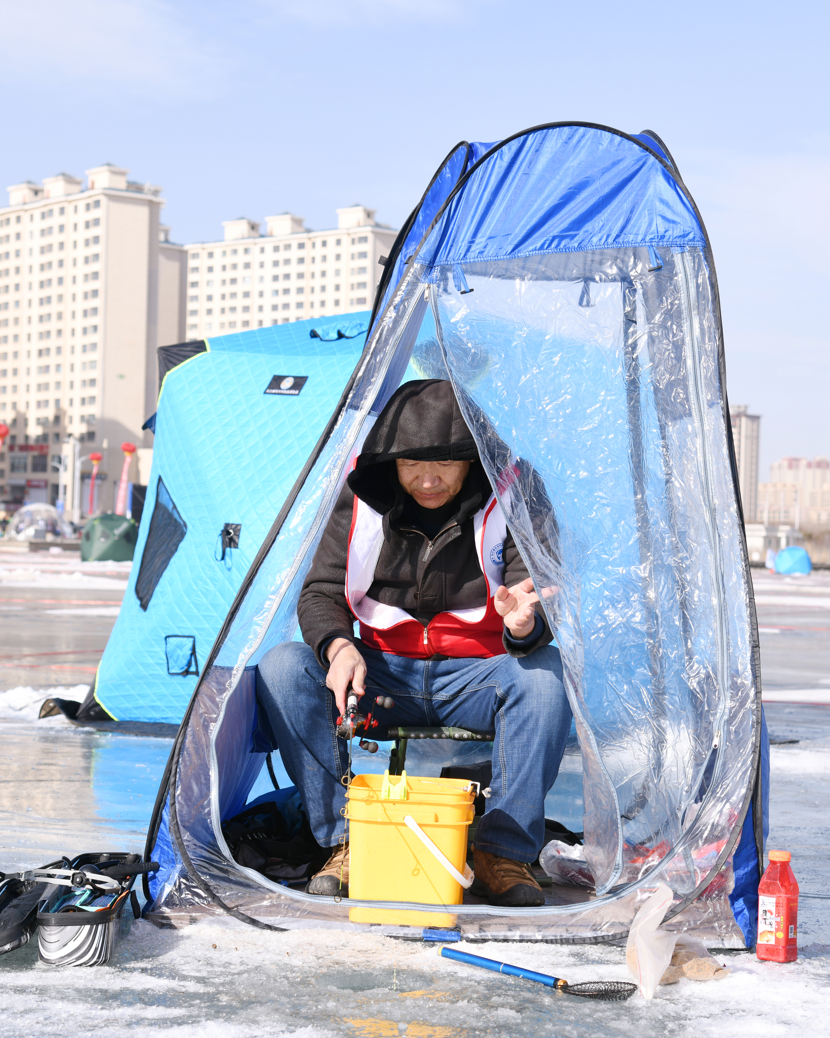 比賽現(xiàn)場(chǎng),釣手們嚴(yán)格遵守比賽規(guī)則,團(tuán)結(jié)協(xié)作、頑強(qiáng)拼搏,從鑿冰破洞、搭設(shè)帳篷到操作漁具整個(gè)過程手法嫻熟,不僅賽出了風(fēng)格、賽出了水平,也展示了釣手們高超的垂釣技巧,為觀眾呈現(xiàn)了一場(chǎng)精彩紛呈的冰釣盛宴。
