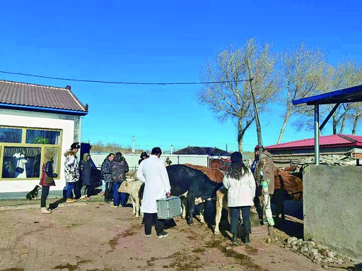 前兩天,五一村村民呂福貴家的一頭母牛病了,他第一時(shí)間與鎮(zhèn)上的“畜牧120”取得聯(lián)系,不到一個(gè)小時(shí),工作人員就帶著藥品來(lái)到了呂福貴家,大半天的無(wú)償診療之后,家中的母牛又重新吃草了,呂福貴懸著的心也落了地。