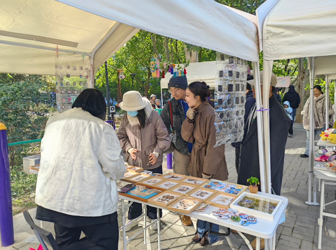 集市現(xiàn)場(chǎng)的一處展位前格外熱鬧——來自阿爾山的非遺樹皮畫,以其古樸天然的肌理和獨(dú)特的山林氣息,吸引了不少市民駐足欣賞。一塊塊白樺樹皮,經(jīng)過巧手剪、刻、拼、貼,化作栩栩如生的飛鳥走獸、林海雪原,靜靜講述著大興安嶺的故事。一旁,色彩鮮艷、針法細(xì)膩的鉤織作品,線條流暢、寓意吉祥的剪紙,同樣備受歡迎。而以阿爾山天池、杜鵑湖等標(biāo)志性景觀為靈感設(shè)計(jì)的系列冰箱貼,更是將北國(guó)壯美山水“微縮”帶入京城百姓家,成了現(xiàn)場(chǎng)的搶手貨。