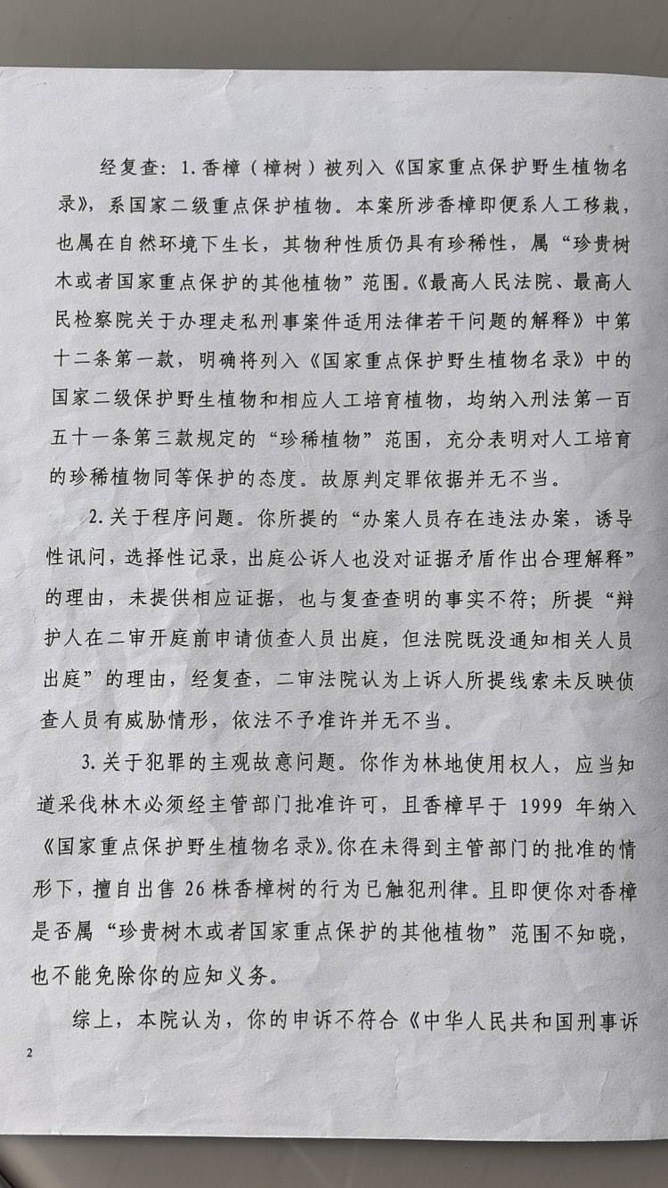 此后,馬萬林向四川省高級人民法院申訴。2019年6月,四川省高院復(fù)查認為,本案所涉香樟即便系人工移栽,也屬在自然環(huán)境下生長,其物種性質(zhì)仍具有珍稀性,屬“珍貴樹木或者國家重點保護的其他植物范圍”,“原判定罪證據(jù)并無不當”。