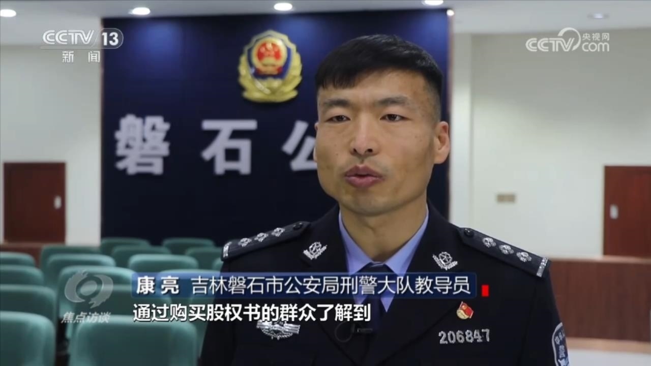 吉林磐石市公安局刑警大隊教導員康亮介紹,通過購買股權(quán)書的群眾了解到,這是一個投資29.9元就能獲得110萬元回報的項目。