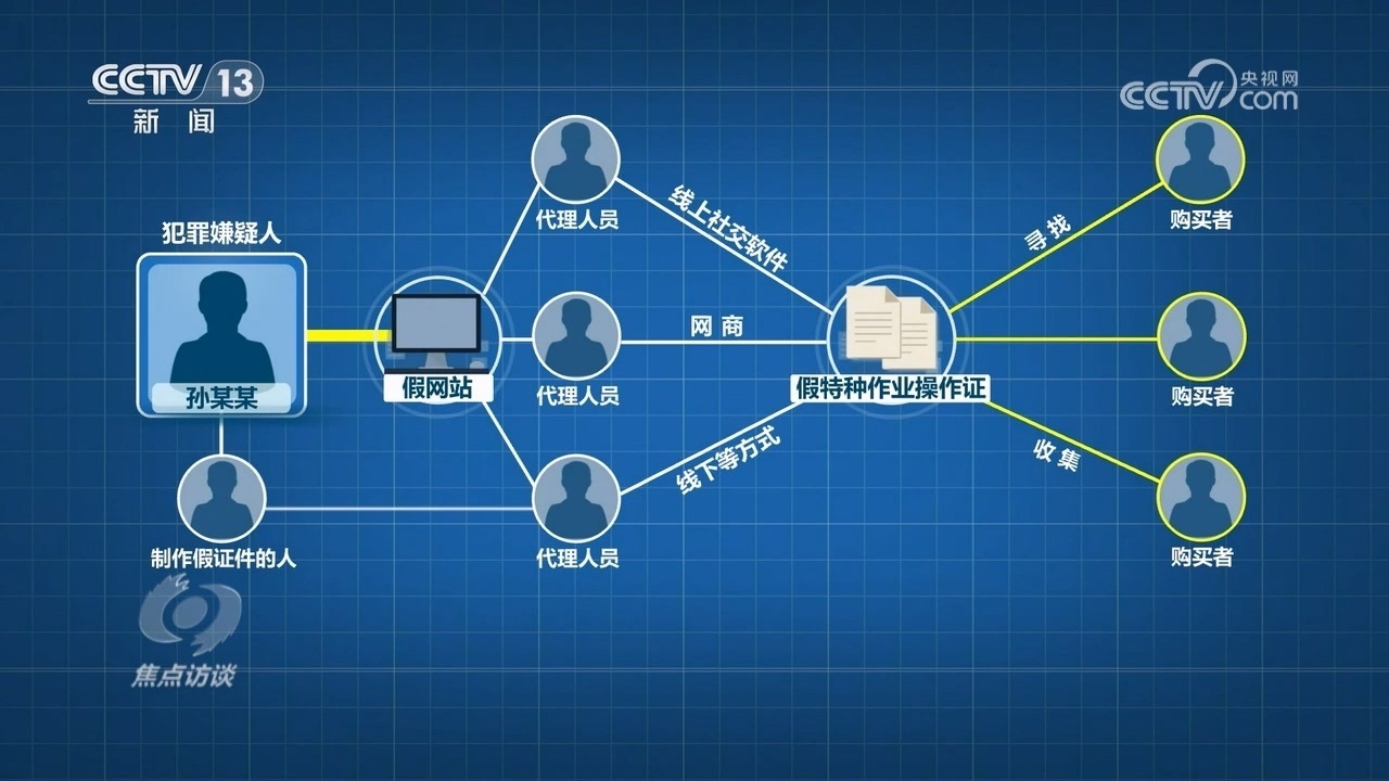據(jù)介紹,犯罪嫌疑人孫某某是最上游,他首先花錢(qián)雇人制作了假網(wǎng)站,然后發(fā)展多名代理人員,代理通過(guò)線上社交軟件、網(wǎng)商和線下等方式,尋找、收集花錢(qián)購(gòu)買(mǎi)假的特種作業(yè)操作證的人員。由專門(mén)負(fù)責(zé)制作假證件的人,制作好假證,發(fā)送給相應(yīng)的下線代理人員,最后到購(gòu)買(mǎi)者手里。