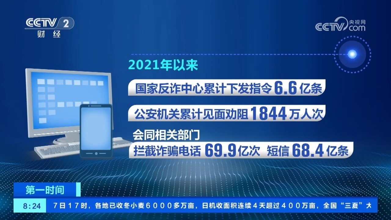 公安機(jī)關(guān)持續(xù)推進(jìn)預(yù)警勸阻和技術(shù)反制工作。2021年以來,國家反詐中心累計(jì)下發(fā)指令6.6億條,公安機(jī)關(guān)累計(jì)見面勸阻1844萬人次,會同相關(guān)部門攔截詐騙電話69.9億次、短信68.4億條,處置涉案域名網(wǎng)址1800萬個(gè),緊急攔截涉案資金1.1萬億元。