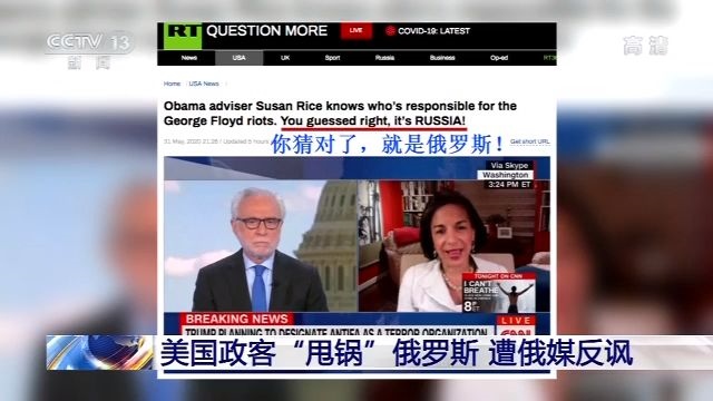 美國(guó)警察暴力執(zhí)法致非洲裔男子死亡抗議活動(dòng)繼續(xù)升級(jí)。然而一些美國(guó)政客試圖將責(zé)任嫁禍別國(guó)。據(jù)“今日俄羅斯”電視臺(tái)報(bào)道,美國(guó)前國(guó)家安全顧問(wèn)蘇珊·賴斯5月31日在接受采訪時(shí)宣稱(chēng),俄羅斯應(yīng)該對(duì)此次抗議活動(dòng)“負(fù)責(zé)”。