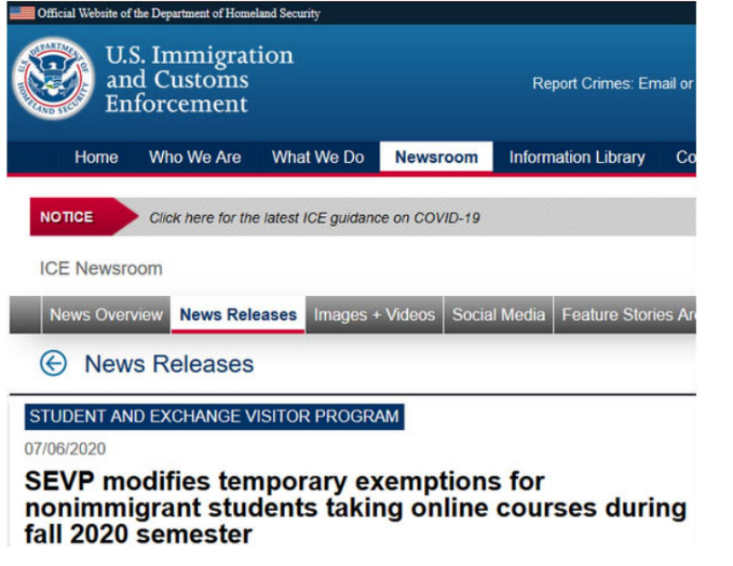 當(dāng)?shù)貢r(shí)間7月6日,針對美國高校今年秋天將開始的課程,美國移民與海關(guān)執(zhí)法局(ICE)發(fā)布了一項(xiàng)新規(guī)定,大致是這么幾個(gè)意思: