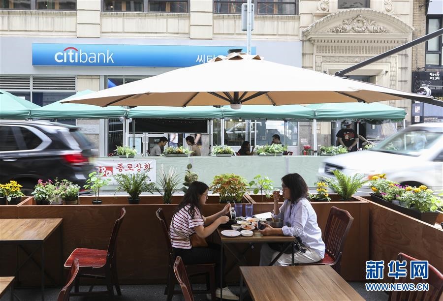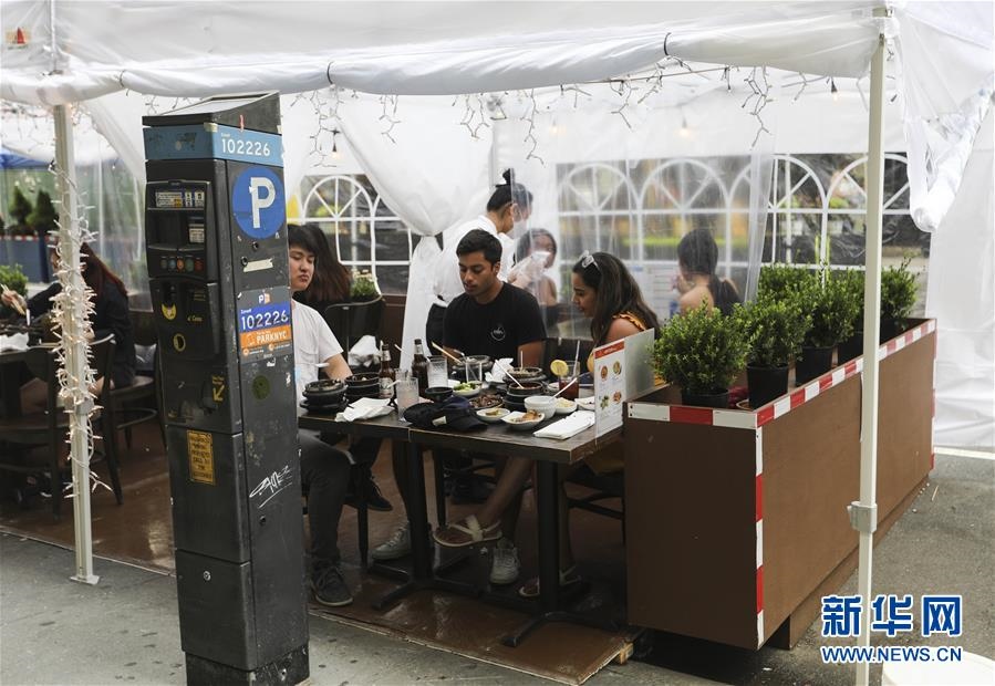 7月23日,在美國紐約,人們?cè)趹敉饩筒蛥^(qū)用餐。美國約翰斯·霍普金斯大學(xué)23日發(fā)布的新冠疫情最新統(tǒng)計(jì)數(shù)據(jù)顯示,美國累計(jì)確診病例超過400萬例。數(shù)據(jù)顯示,截至美國東部時(shí)間23日15時(shí)34分(北京時(shí)間24日3時(shí)34分),美國累計(jì)確診病例4007859例,累計(jì)死亡病例143846例。新華社記者王迎攝