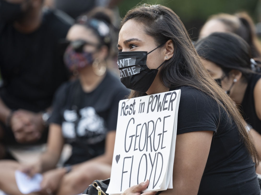 5月25日,人們?cè)诿绹?guó)華盛頓白宮附近參加悼念喬治·弗洛伊德的集會(huì)。當(dāng)日是非洲裔美國(guó)人弗洛伊德遭明尼蘇達(dá)州白人警察“跪頸”執(zhí)法致死一周年,美國(guó)多地舉行悼念活動(dòng)。新華社記者劉杰攝