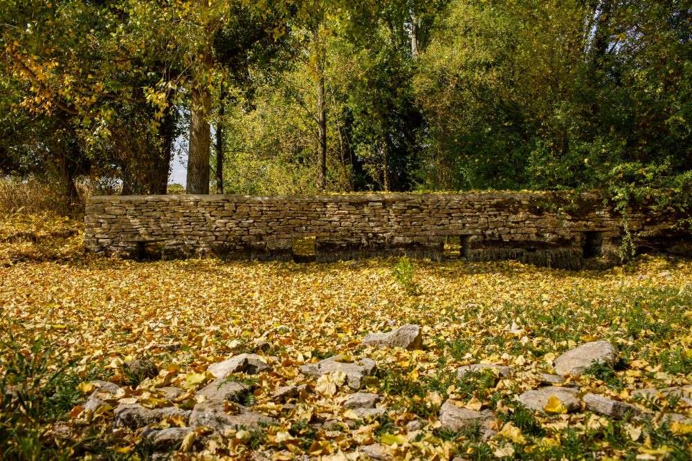 ↑這是8月14日在英國賽倫塞斯特附近拍攝的干涸的泰晤士河發(fā)源地和一塊寫有“泰晤士河起點”的石碑。
