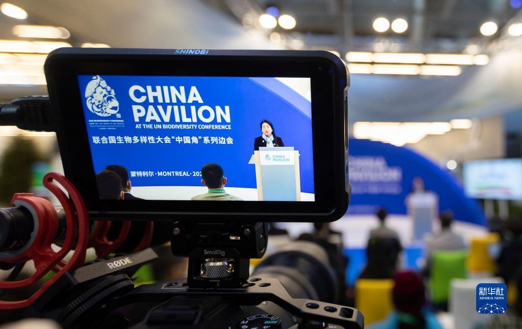 12月8日,在加拿大蒙特利爾舉行的《生物多樣性公約》第十五次締約方大會(COP15)第二階段會議上,中國角開展的一場邊會活動聚焦生態(tài)保護(hù)紅線。 新華社發(fā)(鄒崢攝)