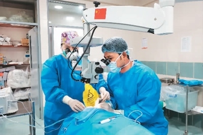 中方專家對當(dāng)?shù)蒯t(yī)生進行手術(shù)指導(dǎo)。 (新華社發(fā))