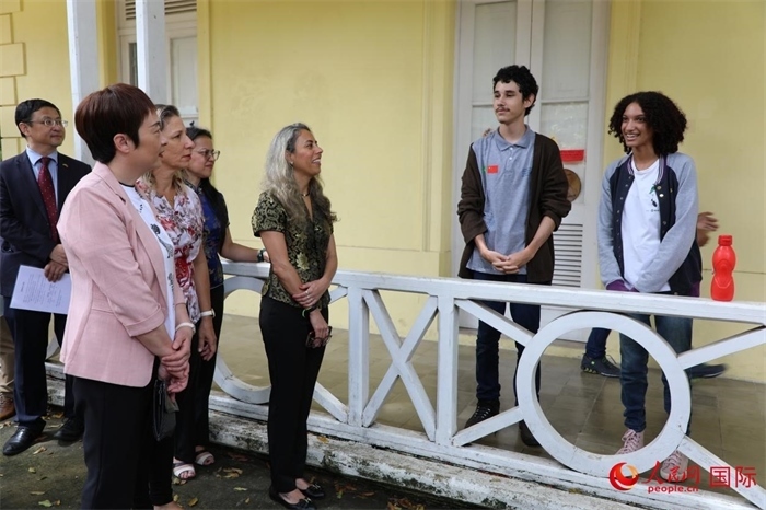 2月14日,中國(guó)駐里約熱內(nèi)盧總領(lǐng)事田敏來(lái)到巴西里約州尼特羅伊市的尼特羅伊葡中雙語(yǔ)中學(xué)訪問(wèn),并向該校捐贈(zèng)了一批中國(guó)文化書(shū)籍。人民網(wǎng)記者 陳一鳴攝