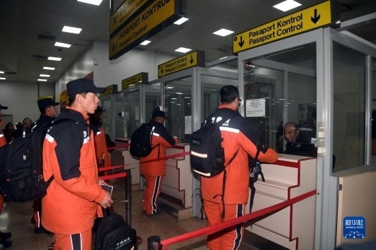 2月16日,中國救援隊(duì)隊(duì)員在土耳其阿達(dá)納國際機(jī)場乘坐國航包機(jī)回國。