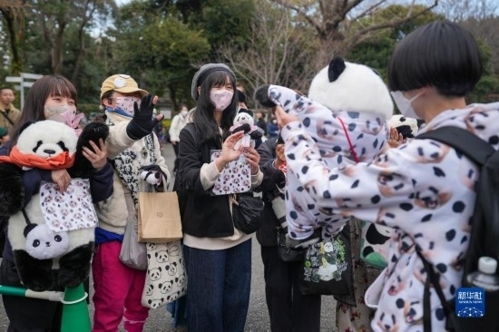 2月19日,在日本東京上野動物園,游客排隊與大熊貓“香香”告別。新華社記者 張笑宇 攝
