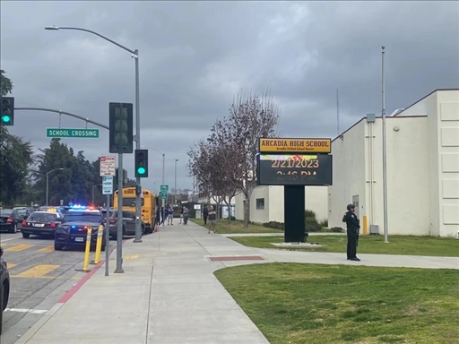 新華社洛杉磯2月24日電(記者高山)當(dāng)?shù)貢r(shí)間2月21日下午3點(diǎn)多,美國(guó)加利福尼亞州洛杉磯縣阿卡迪亞高中即將放學(xué),突然間大批警車(chē)呼嘯而至,封鎖了各個(gè)入口,荷槍實(shí)彈的警察在直升機(jī)掩護(hù)下沖入校園。教室內(nèi),師生們緊張地躲到桌下。校園外,家長(zhǎng)們焦急地等待消息。