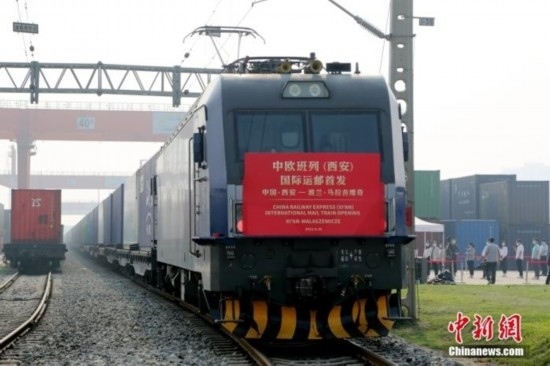 資料圖:2022年9月16日,中歐班列(西安)國(guó)際運(yùn)郵專(zhuān)線首次開(kāi)行,列車(chē)裝載著國(guó)際郵件、包裹、商業(yè)快件從西安國(guó)際港站駛出,經(jīng)阿拉山口口岸出境,將于約12天后抵達(dá)波蘭馬拉舍維奇,郵件再交由波蘭郵政轉(zhuǎn)運(yùn)到歐洲各國(guó)。 中新社記者 張遠(yuǎn) 攝