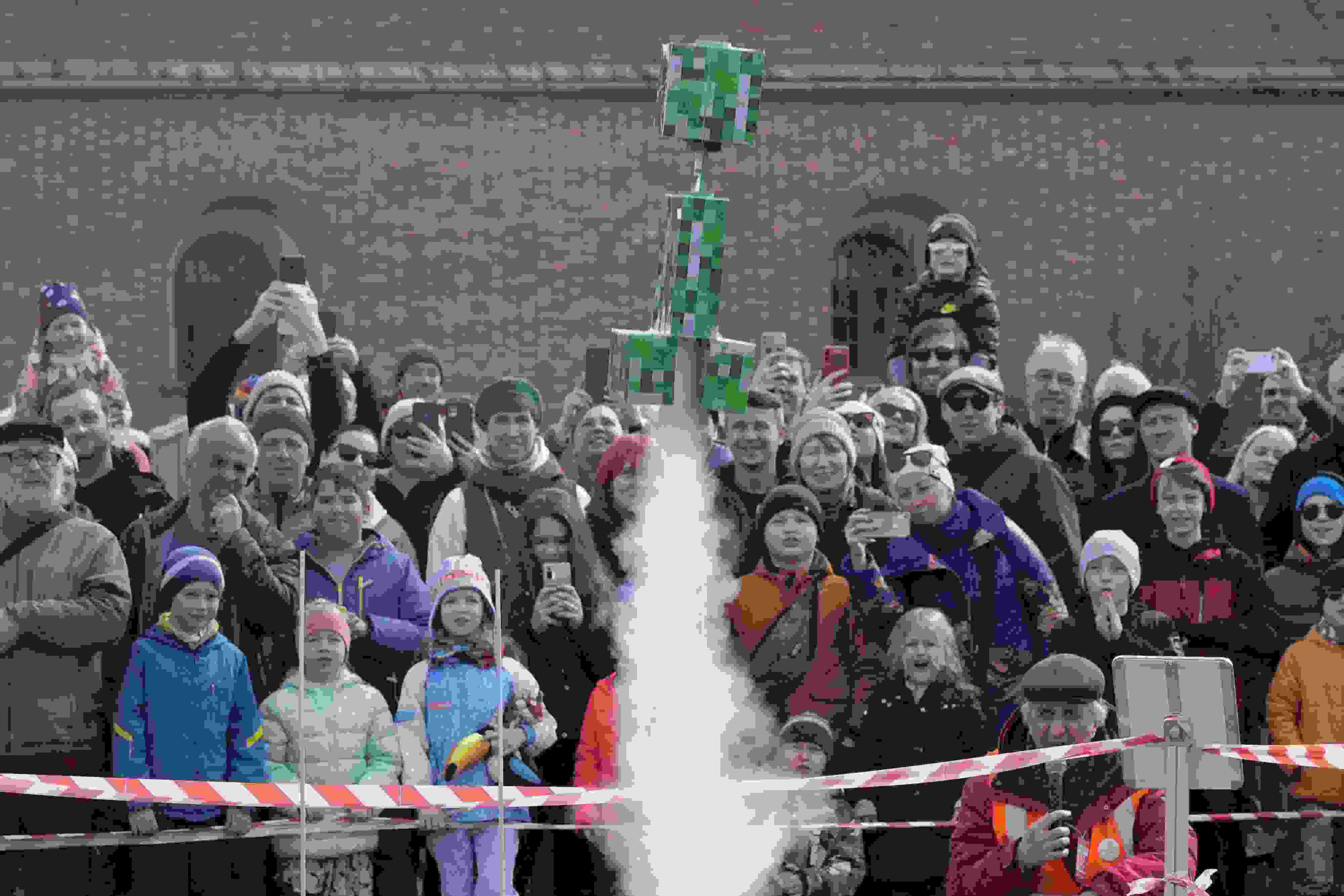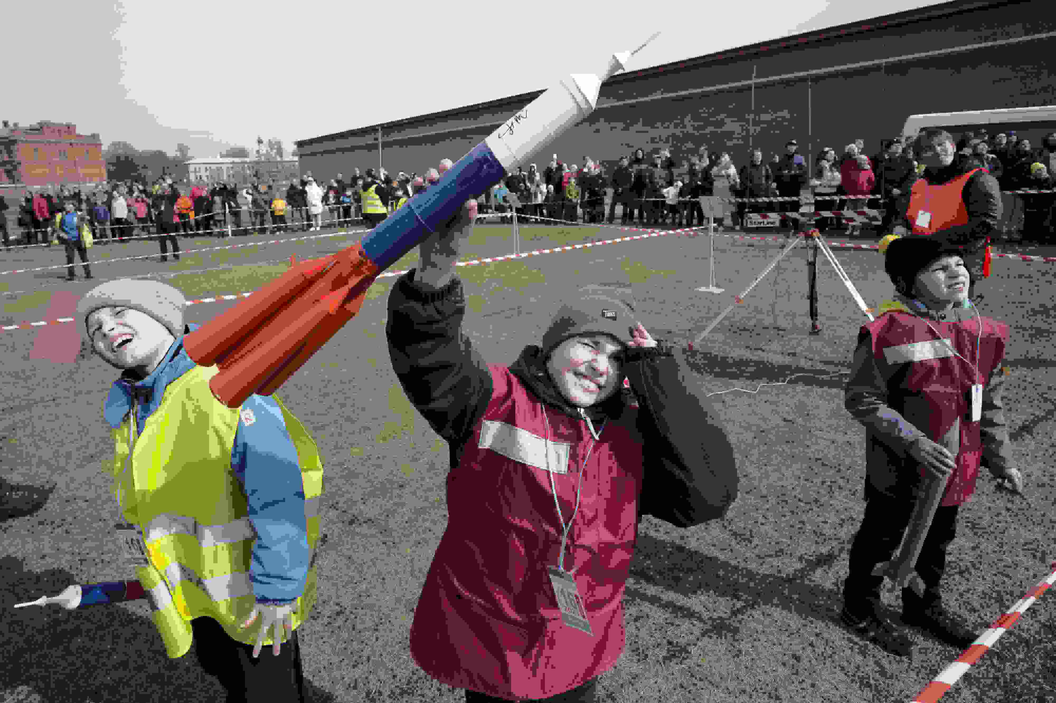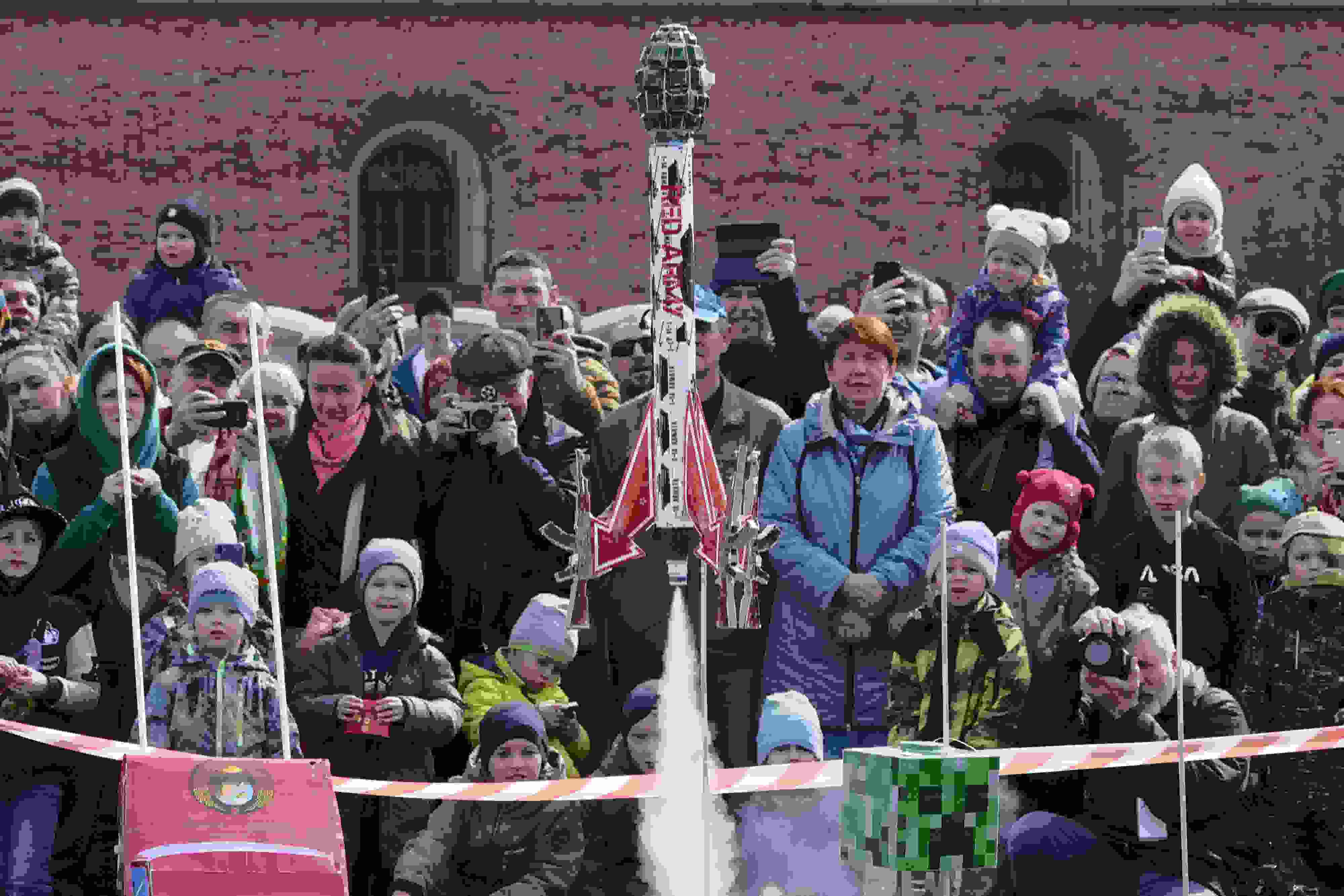 當(dāng)?shù)貢r(shí)間2023年4月16日,俄羅斯圣彼得堡,民眾發(fā)射火箭模型紀(jì)念人類(lèi)首次太空飛行62周年。 視覺(jué)中國(guó)