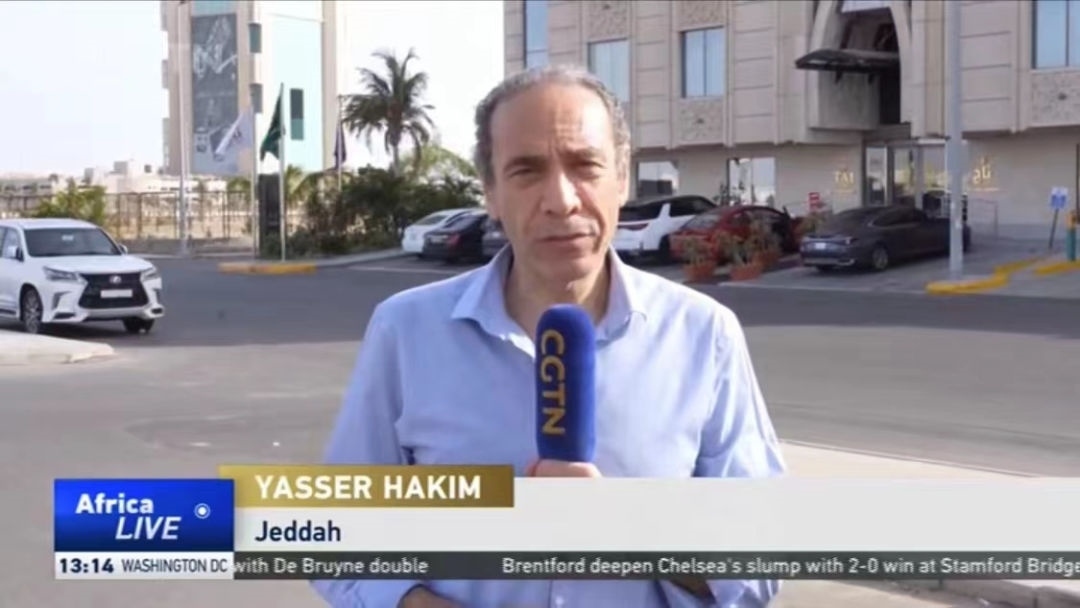△CGTN報(bào)道員Yasser前往沙特阿拉伯吉達(dá)中方人員安置酒店進(jìn)行報(bào)道