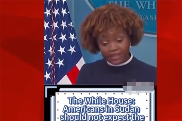 為證明自己的觀點,安柏然在視頻中展示了幾個視頻片段。其中一個片段顯示,一名美媒主持人報道稱,美軍在夜間出動直升機(jī)將大約100名美國外交官及其家屬從蘇丹撤出。還有一段視頻顯示,白宮新聞秘書卡里娜·讓-皮埃爾近日在記者會上稱,美國駐蘇丹使館4月16日曾發(fā)布安全警告稱,由于喀土穆安全局勢存在不確定性且機(jī)場已關(guān)閉,美國公民此時不應(yīng)期待美國政府協(xié)調(diào)撤僑?!爱?dāng)務(wù)之急是,在蘇丹的美國公民要自行安排,在困難情況下確保自身安全。我們建議美國公民就地避難……”她稱。