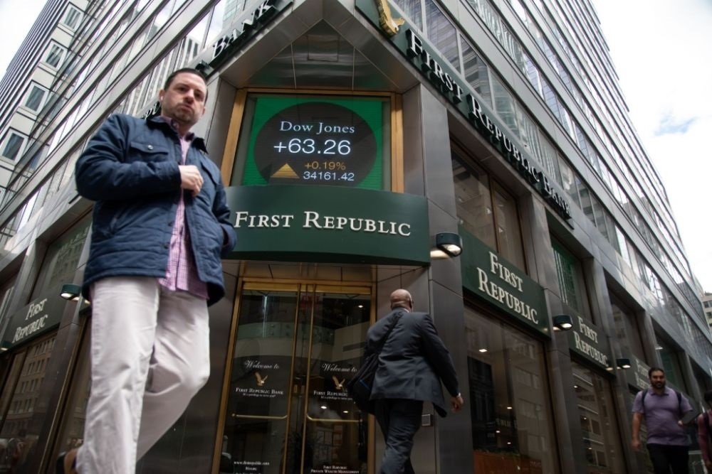 5月1日,在美國(guó)紐約,行人從一家第一共和銀行前走過(guò)。新華社發(fā)(郭克攝)