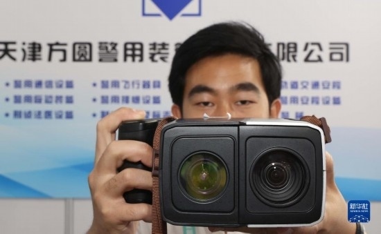 5月12日,工作人員在展示便攜激光夜視取證儀。