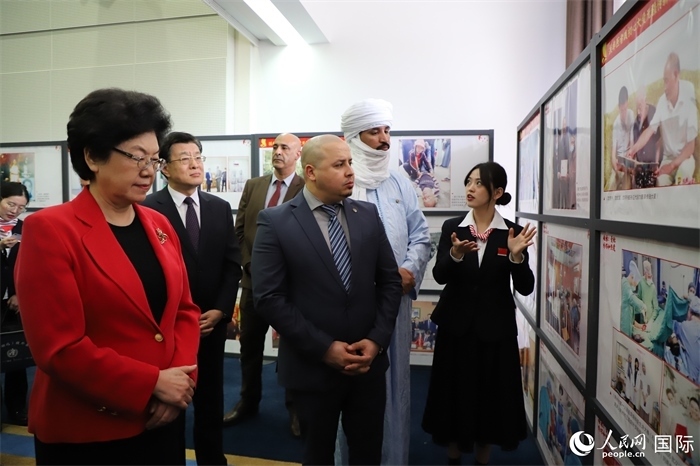 與會(huì)嘉賓參觀“60年中國(guó)援阿醫(yī)療隊(duì)圖片展”。人民網(wǎng)記者 王傳寶攝