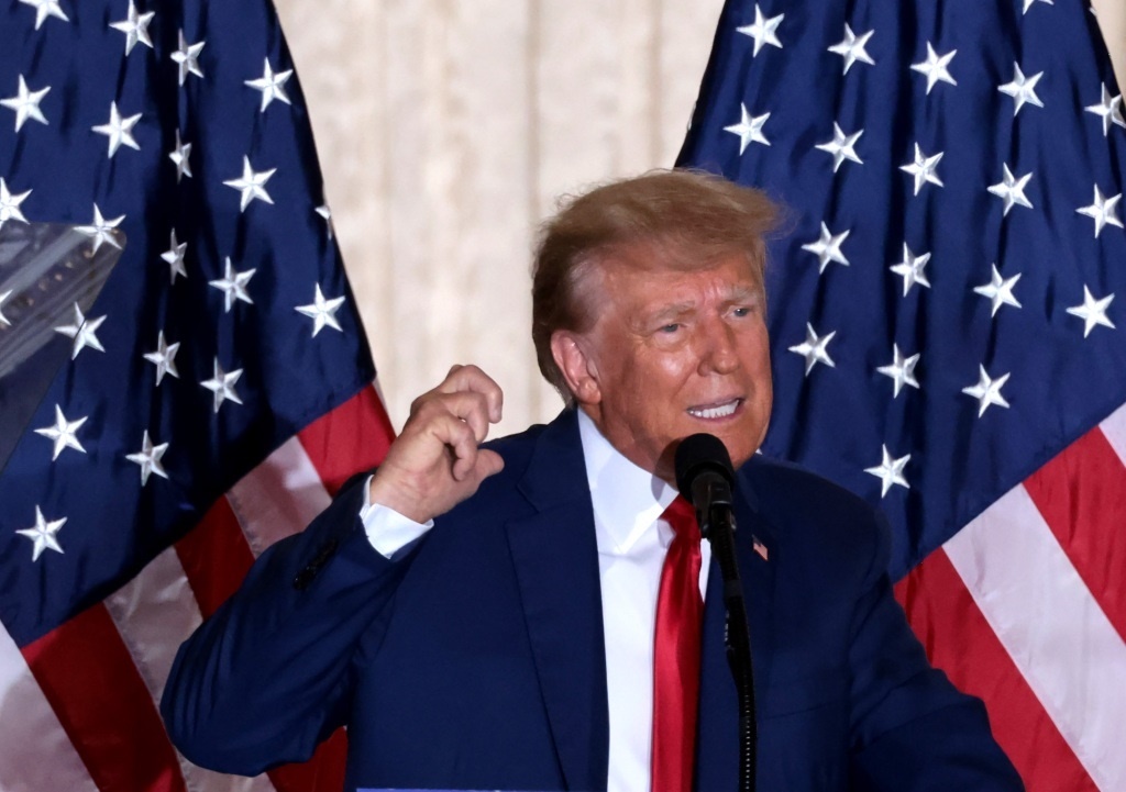 今年3月,特朗普在一場競選集會上羞辱德桑蒂斯。(資料圖)