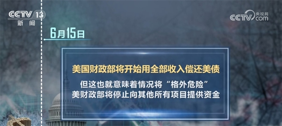 6月15日,美國(guó)財(cái)政部將開(kāi)始用全部收入償還美債,但這也就意味著情況將“格外危險(xiǎn)”,美財(cái)政部將停止向其他所有項(xiàng)目提供資金。