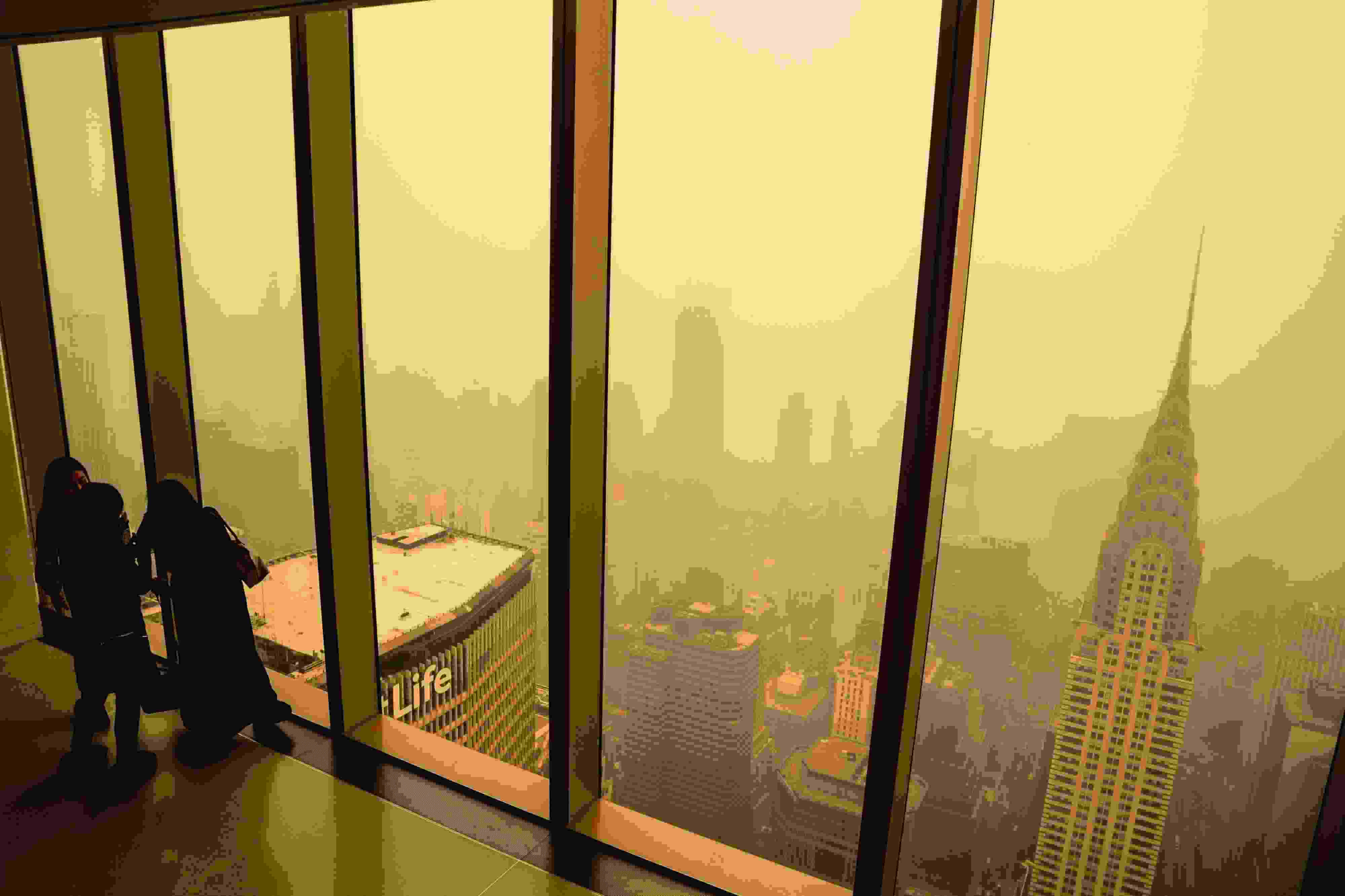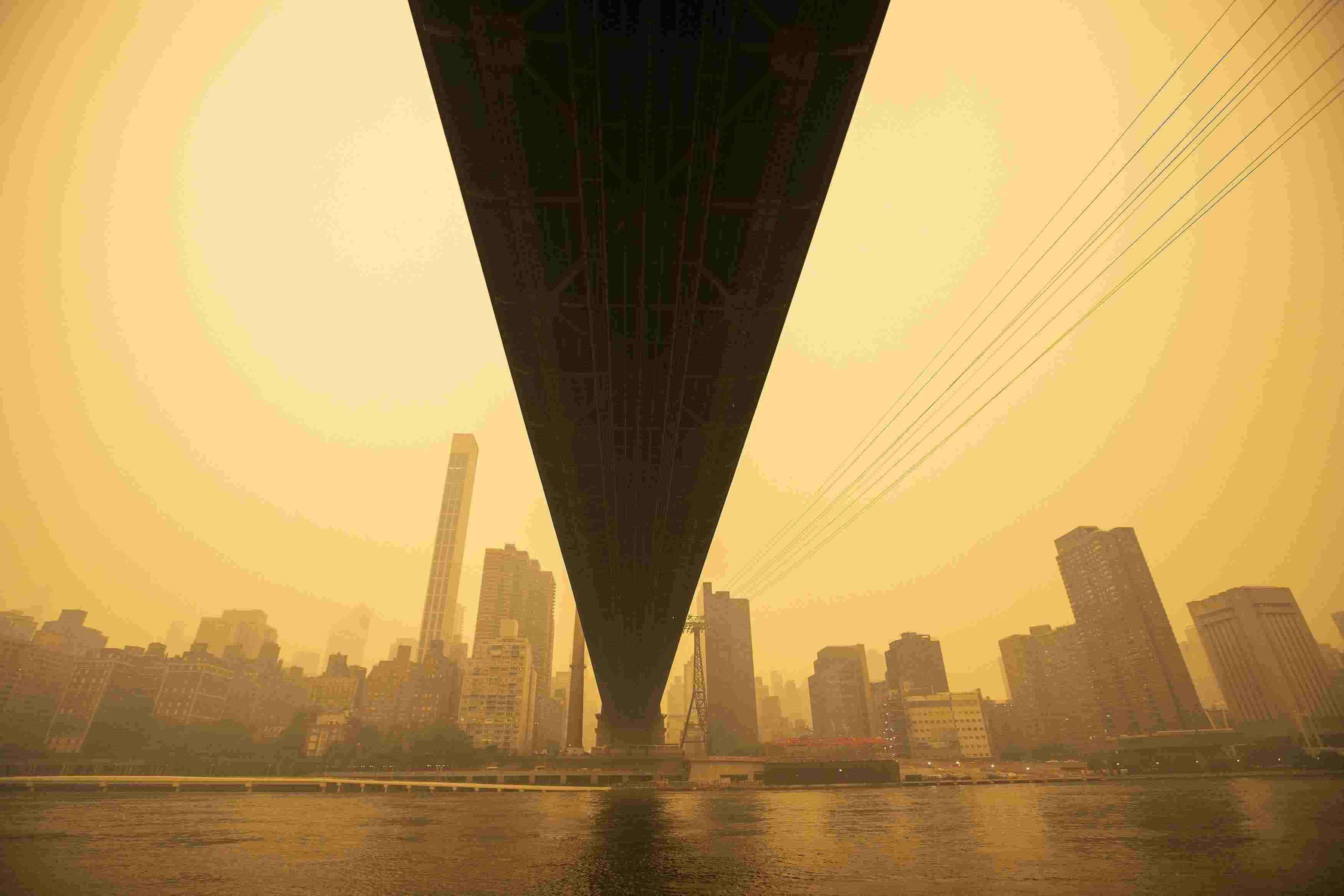 當(dāng)?shù)貢r(shí)間2023年6月7日,受加拿大野火煙霧持續(xù)南下影響,美國(guó)紐約籠罩在“橙色霧霾”中。當(dāng)天,紐約成為全球空氣污染最嚴(yán)重的城市。 視覺(jué)中國(guó)