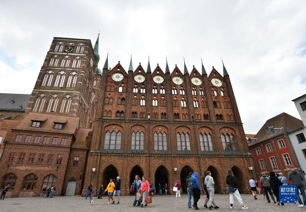 這是6月1日拍攝的德國(guó)施特拉爾松德市政廳。