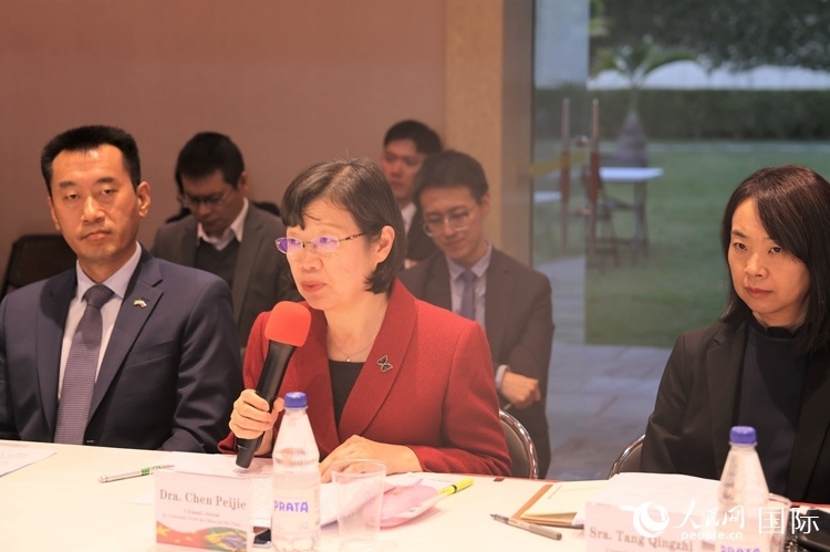 中國駐圣保羅總領(lǐng)事陳佩潔在對話會上致辭。人民網(wǎng)記者 時元皓攝