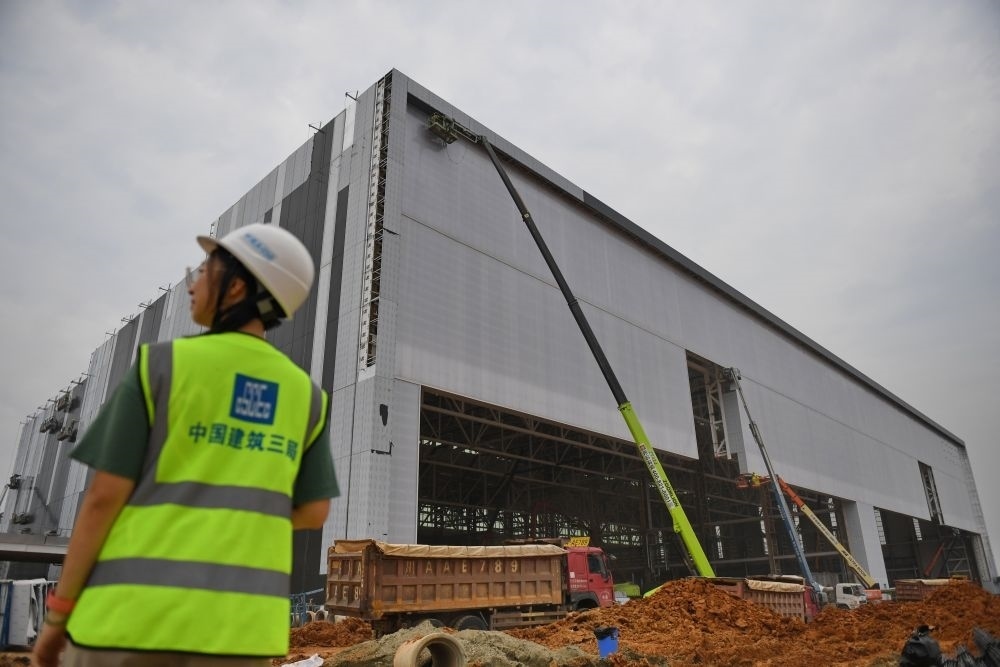 2023年8月15日,在位于四川省成都市雙流區(qū)的空中客車(成都)飛機(jī)全生命周期服務(wù)有限公司項(xiàng)目建設(shè)現(xiàn)場(chǎng),工人在作業(yè)。新華社發(fā)(李向雨 攝)