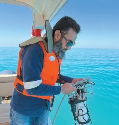 在中國港灣工程有限公司承建的沙特阿拉伯紅海開發(fā)項目中,工作人員使用水質檢測浮標傳感器對施工區(qū)域內水質進行監(jiān)測。唐浩偉攝