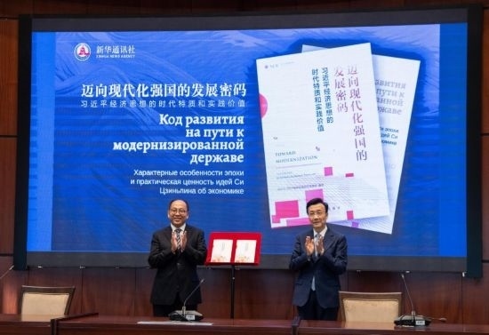 會(huì)議重點(diǎn)宣介和展示的新華社國(guó)家高端智庫(kù)報(bào)告《邁向現(xiàn)代化強(qiáng)國(guó)的發(fā)展密碼——習(xí)近平經(jīng)濟(jì)思想的時(shí)代特質(zhì)和實(shí)踐價(jià)值》引發(fā)與會(huì)各國(guó)嘉賓廣泛關(guān)注。該智庫(kù)報(bào)告是新華社研究習(xí)近平新時(shí)代中國(guó)特色社會(huì)主義思想的創(chuàng)新成果,從哲學(xué)維度、方略維度、戰(zhàn)術(shù)維度和全球視野,全面闡釋習(xí)近平經(jīng)濟(jì)思想的核心要義、精神實(shí)質(zhì)、豐富內(nèi)涵,以“美”“實(shí)”“效”“協(xié)”“共”五個(gè)關(guān)鍵字深入解讀習(xí)近平經(jīng)濟(jì)思想的鮮明特征,系統(tǒng)展現(xiàn)了其中所蘊(yùn)含的大國(guó)經(jīng)濟(jì)治理智慧。